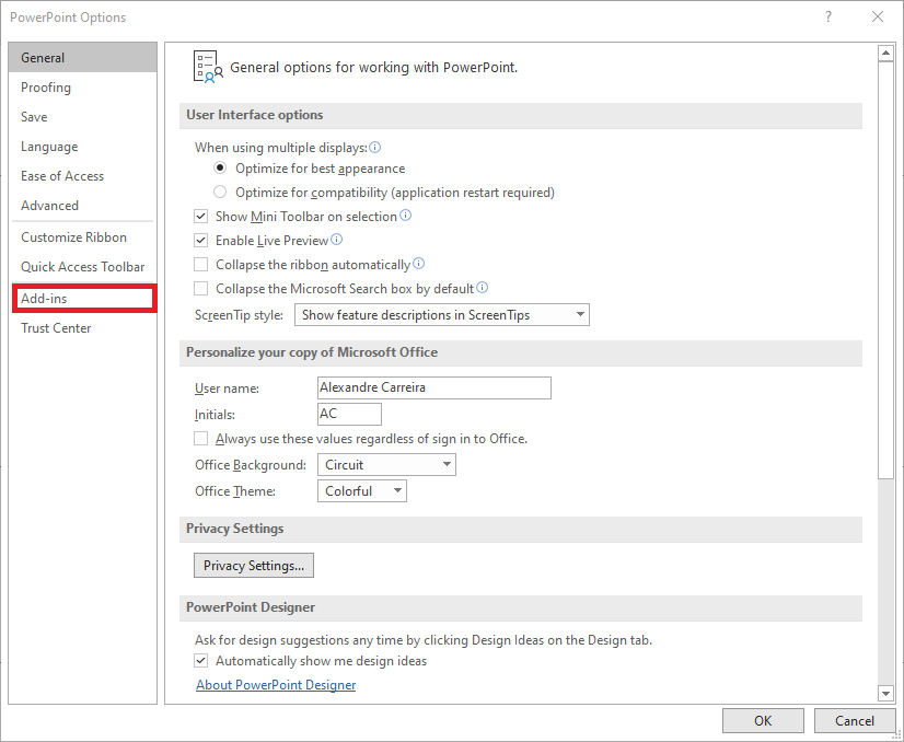 - Select Add-ins: