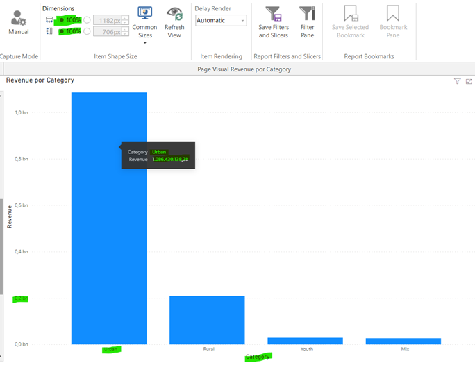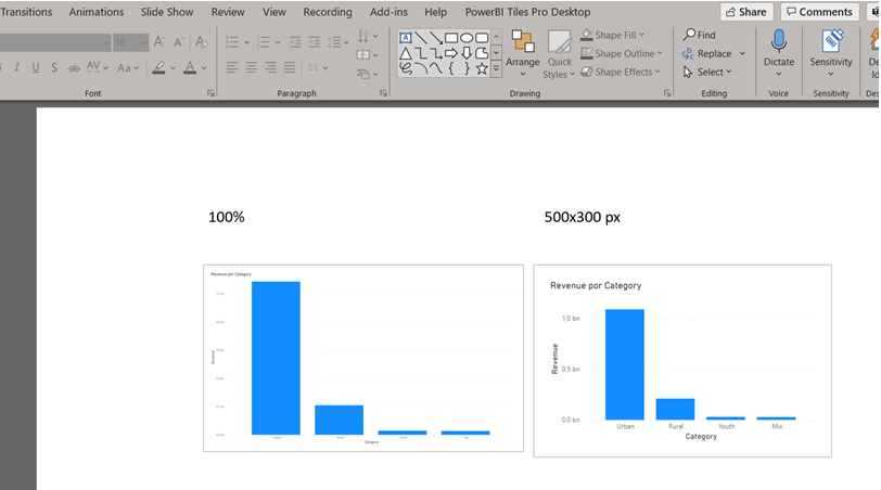 Since PowerBI Tiles Desktop takes screenshots according to the dimension configured, you might need to adjust them for the font size to be more accurate. Here is an example: